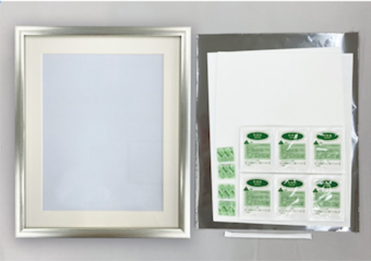 額、白紙、白クッション紙、アルミシート、ストロー×各1、乾燥剤×6、脱酸素剤×4